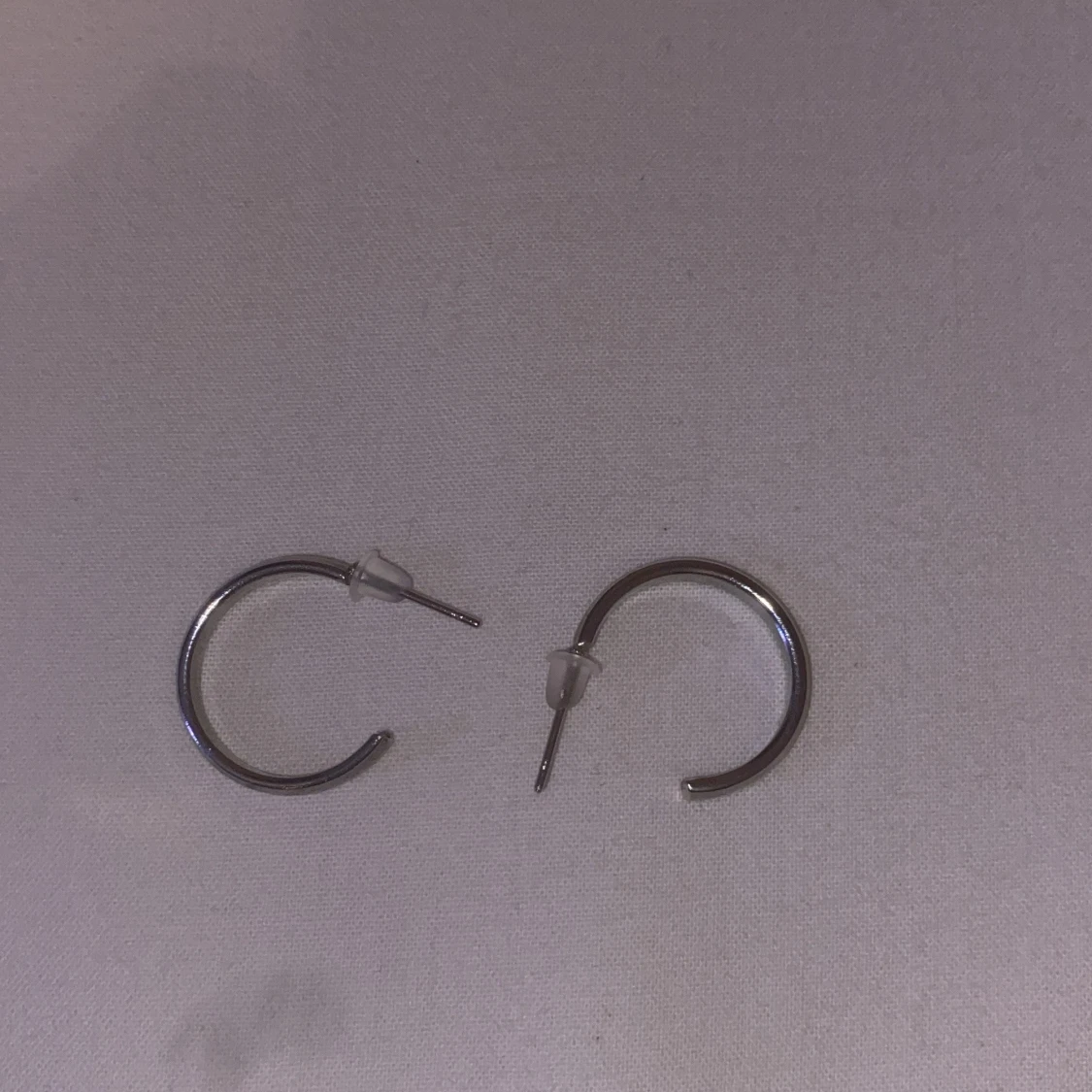Ett par klassiska silvriga hoops med enkel och stilren design. Örhängena är runda och har stift med transparenta pluppar. Perfekta för dig som gillar minimalistiska smycken och vill ha något som funkar till allt.