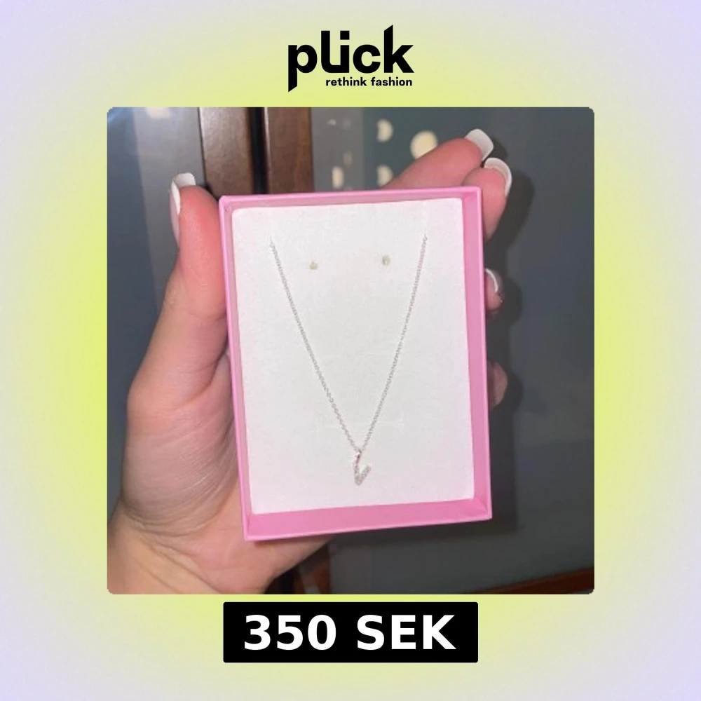 Snyggt halsband i silver med ett V-format hänge dekorerat med små glittrande stenar. Kedjan är tunn och elegant, perfekt för att ge en stilren touch till din outfit. Levereras i en rosa ask.