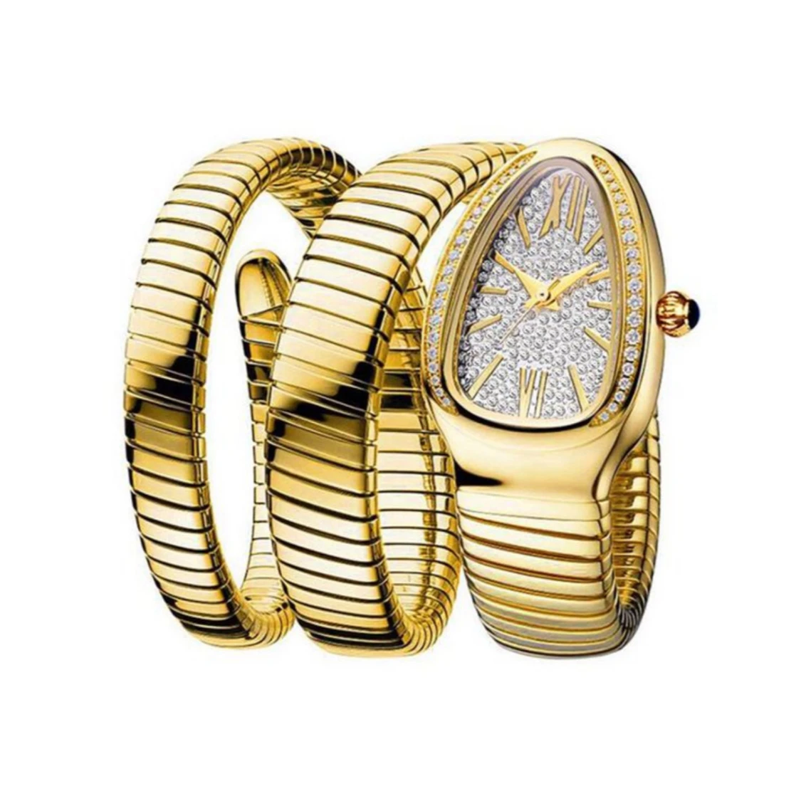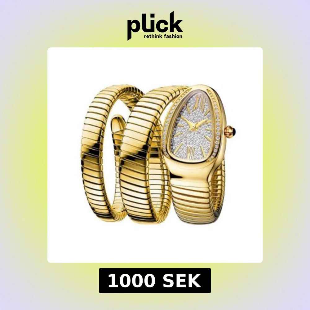 Säljer en riktigt snygg ormformad klocka med spiralarmband. Finns i helguld, helsilver eller guld/silver. Urtavlan är droppformad och glittrar med stenar och romerska siffror. Klockan har en cool och unik design som verkligen sticker ut.