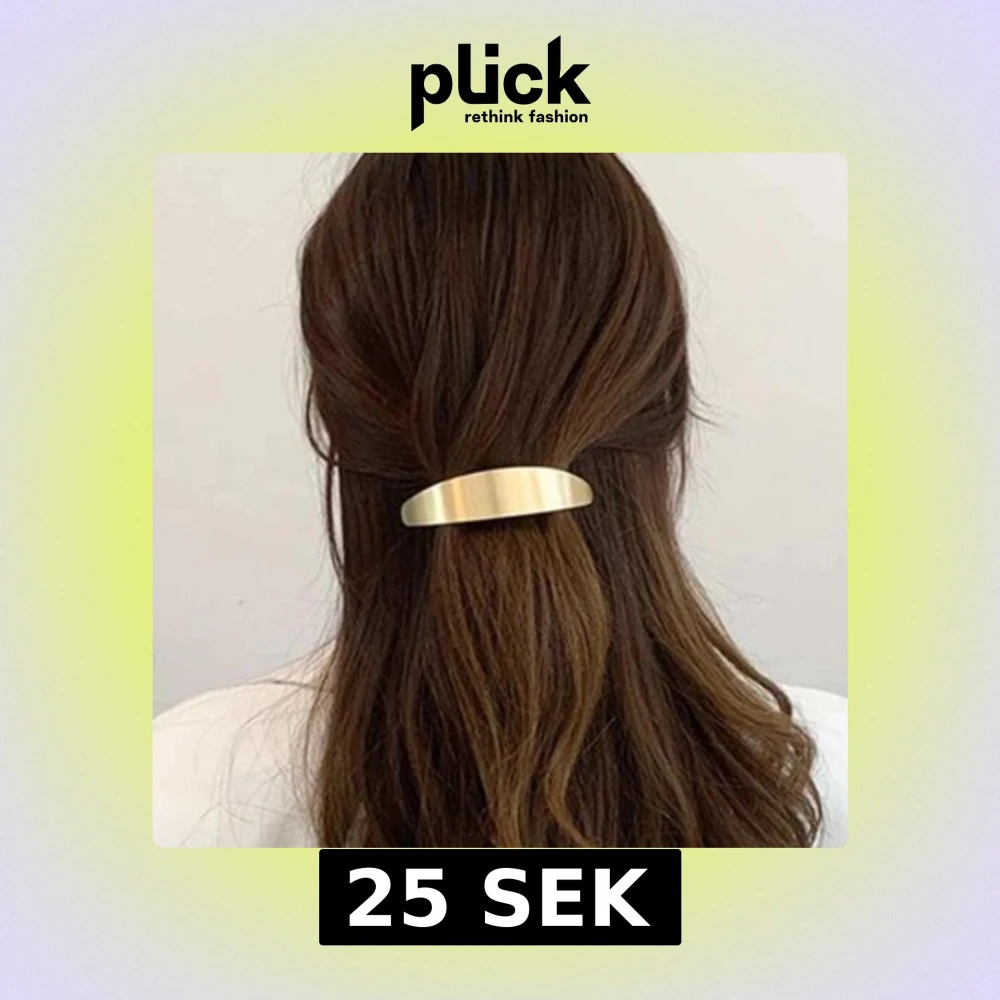 Snygg och stilren hårklämma i guld med en slät, böjd design. Perfekt för att hålla håret på plats med en touch av elegans. Passar både till vardag och festliga tillfällen.