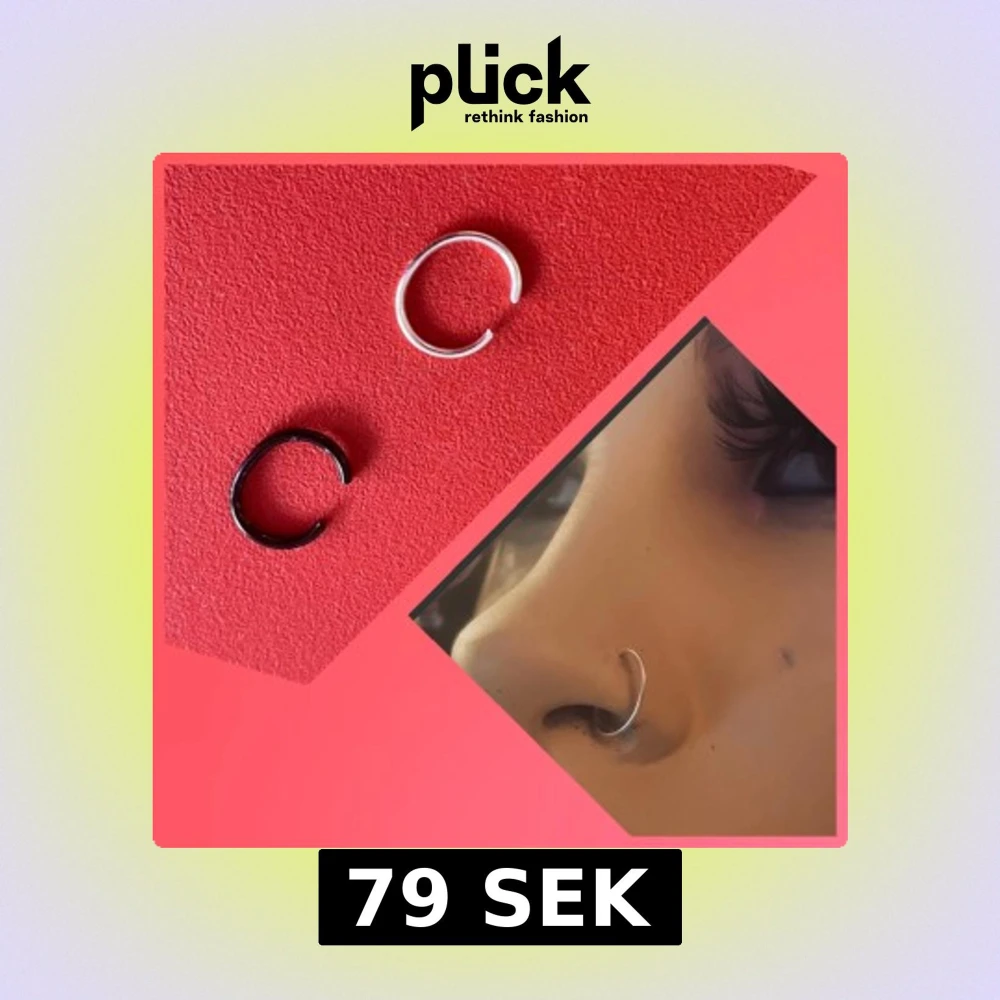 Två näsringar i minimalistisk stil, en i svart och en i silver. Båda är öppna cirklar som enkelt kan sättas i näsan för en cool och edgy look. Perfekt för dig som vill ha en enkel men snygg detalj till ansiktet.