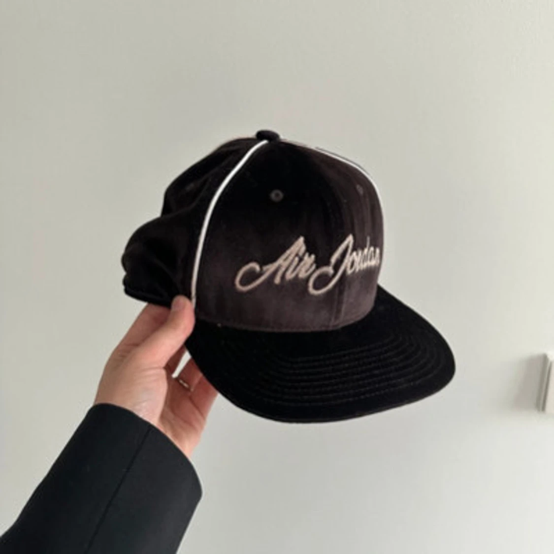 Snygg svart keps från Air Jordan med vit broderad logga framtill. Kepsen har en klassisk design med vit piping längs panelerna och justerbar passform. Perfekt för en sportig look eller som en stilren accessoar.