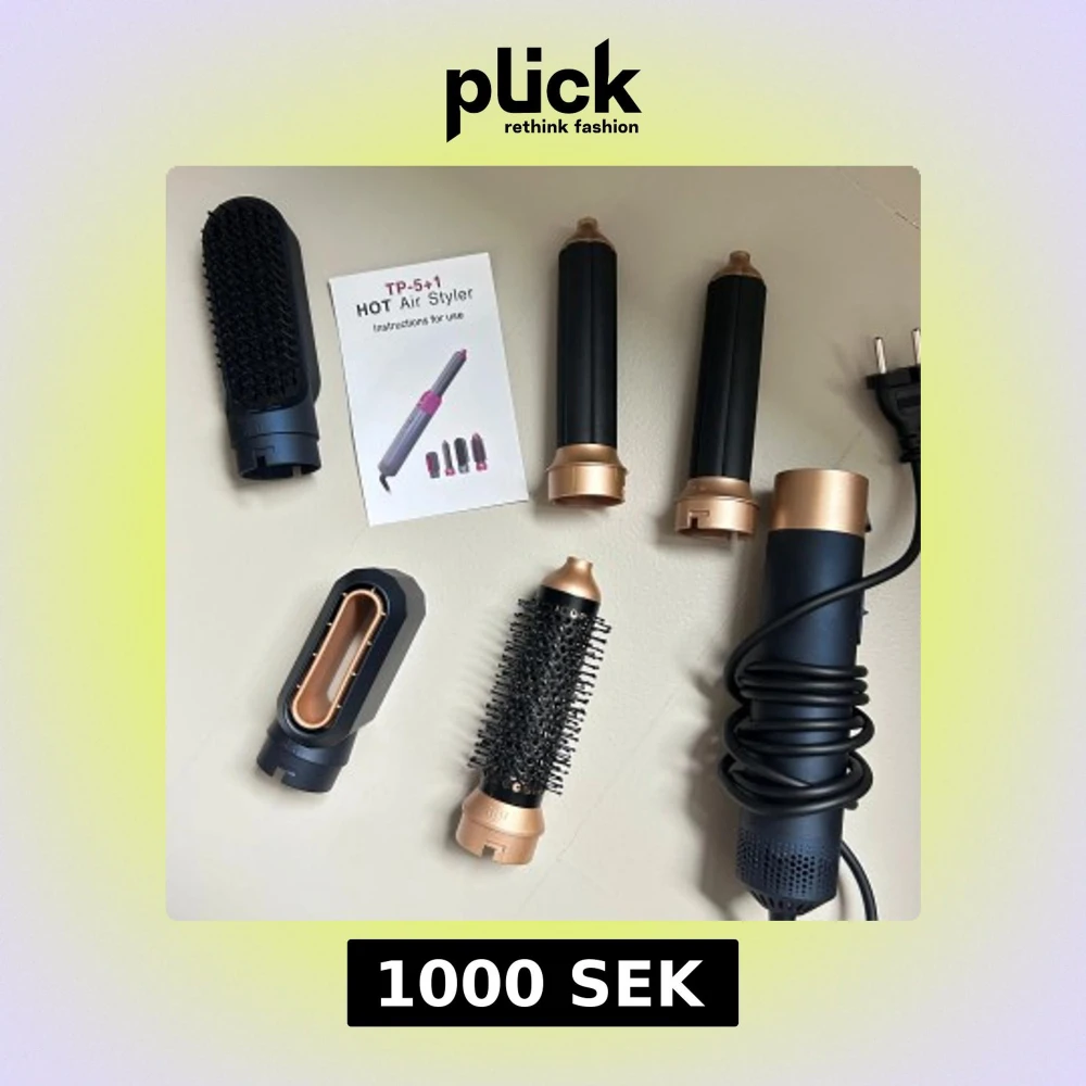 Säljer en mångsidig varmluftsborste med flera utbytbara tillbehör för olika stylingbehov. Setet inkluderar olika borstar och munstycken, allt förpackat i ett elegant blått fodral. Perfekt för att skapa volym och lockar med enkelhet.