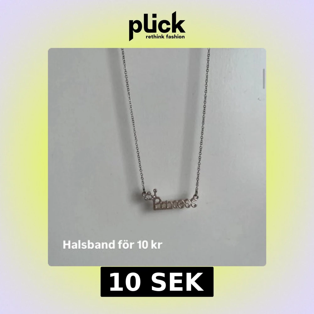 Säljer ett tunt silverfärgat halsband med ett hänge där det står 'Princess' och små dekorativa stenar ovanför P:et. Perfekt accessoar för dig som vill ha något sött och stilrent.
