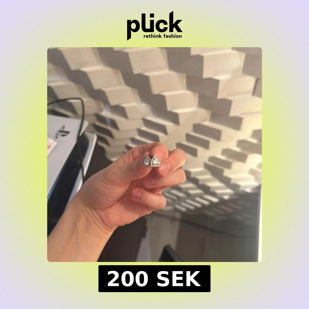 Säljer ett par söta örhängen i silverfärg med gnistrande stenar formade som hjärtan. De har en smidig låsmekanism och passar perfekt för dig som gillar glittriga detaljer och romantisk stil.