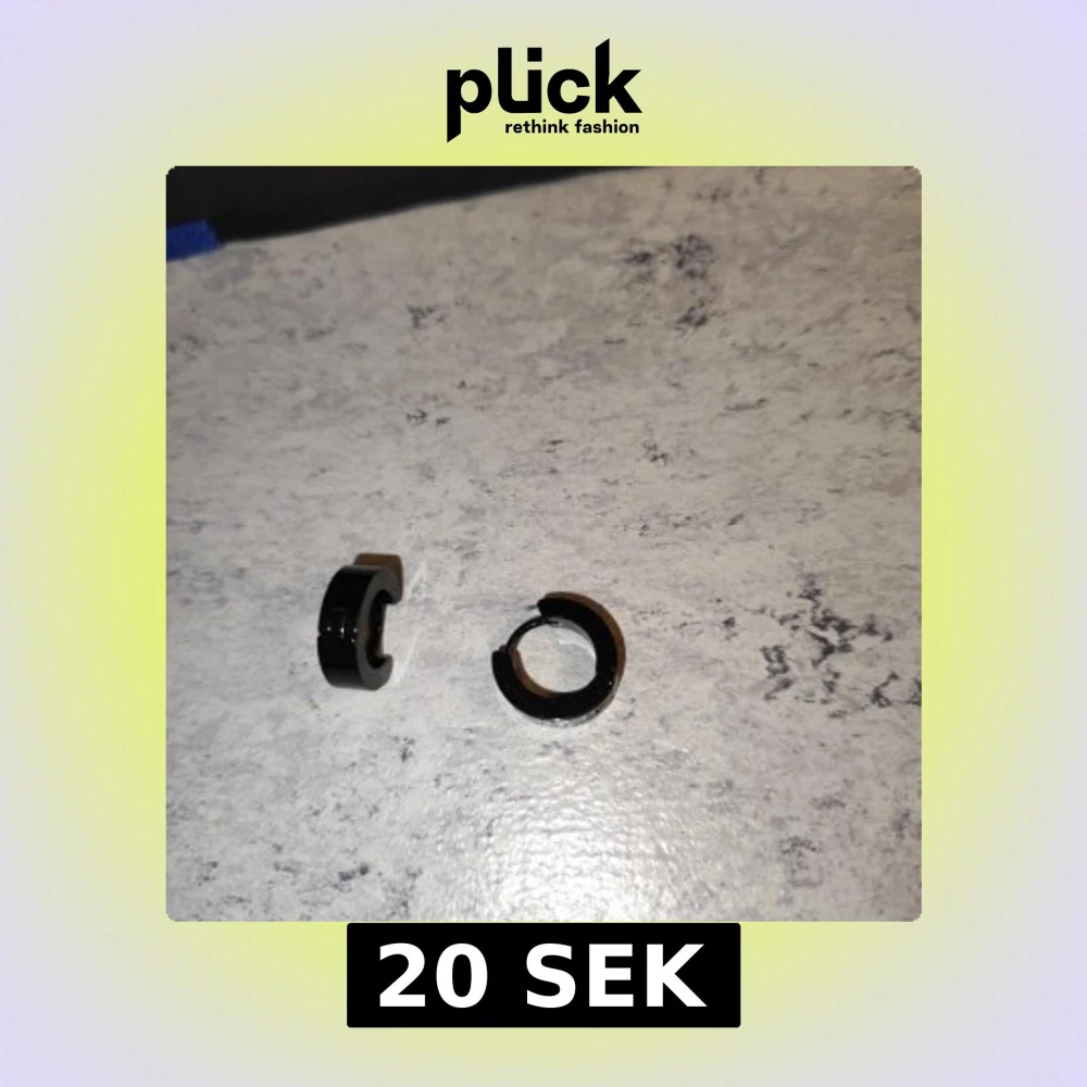 Säljer ett par små svarta chunky örhängen i metall med enkel och stilren design. De är runda och har en blank finish