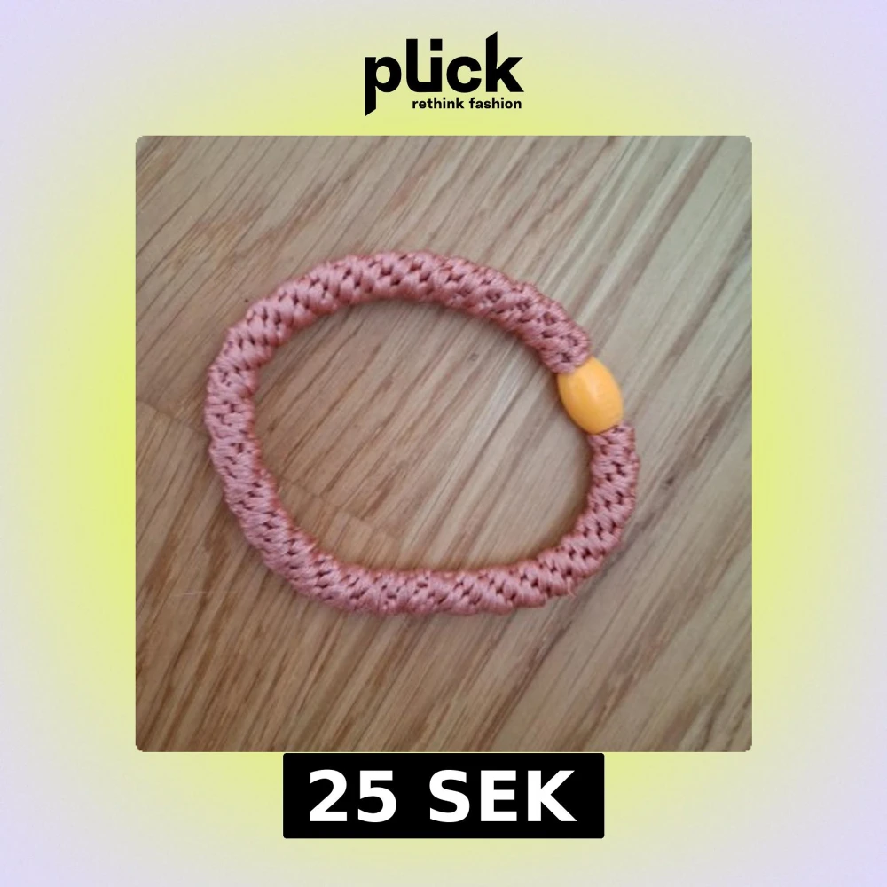 Ett handgjort armband i flätad rosa tråd med en rund gul pärldetalj. Armbandet har en enkel och trendig look som passar perfekt till din vardagsstil. Färgerna ger en lekfull och ungdomlig känsla.
