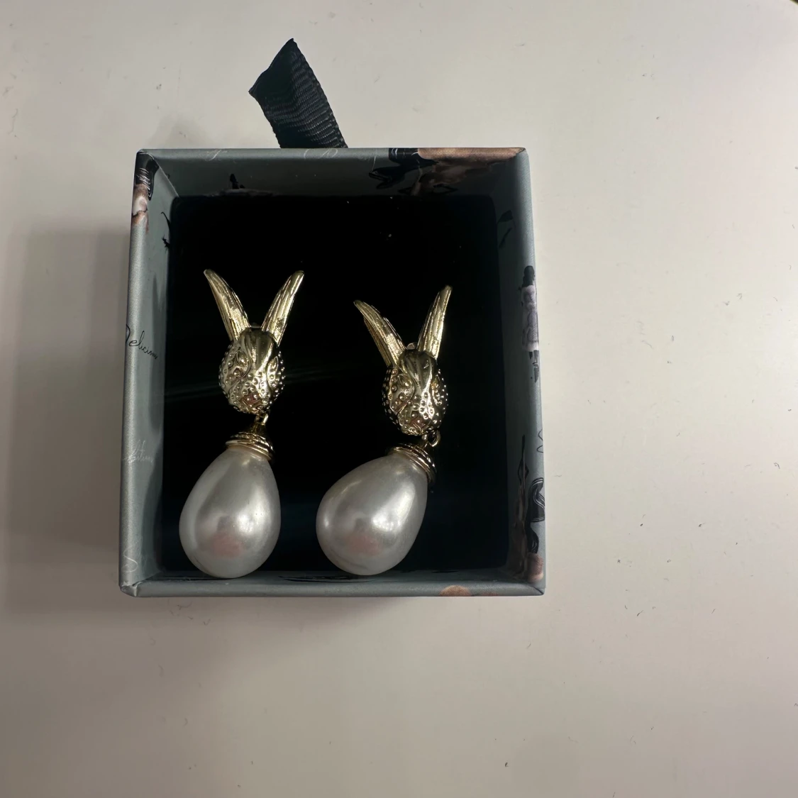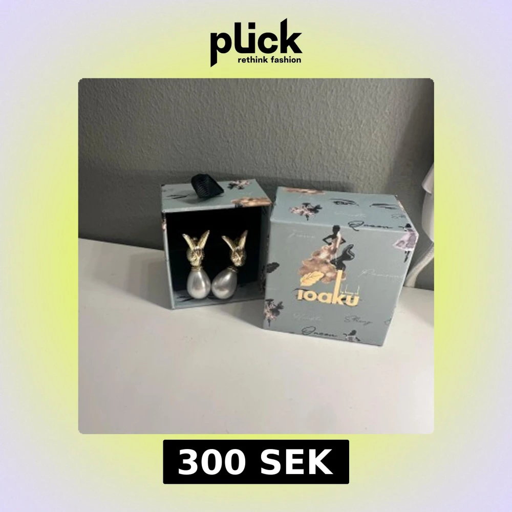 INTRESSEKOLL på detta eleganta örhängen från Ioaku i guld med stora vita pärlor. Köpte dessa när jag var i Stockholm men fick aldrig användning för dem. Designen har en unik form med detaljer som liknar kaninöron. Perfekta för att ge en lyxig touch till din stil.
