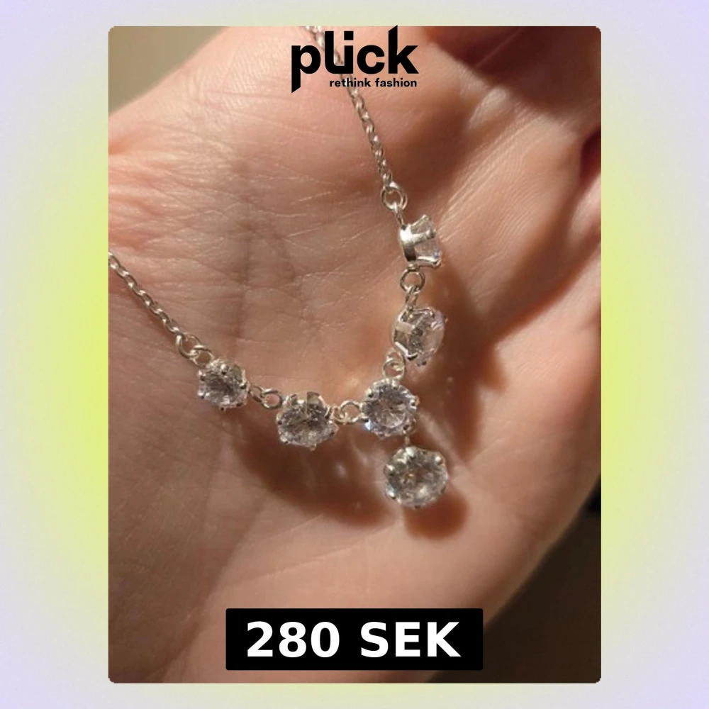 Snyggt halsband i 925 sterling silver med fem gnistrande stenar i rund fattning. Kedjan är tunn och elegant, och stenarna ger ett lyxigt och glittrigt intryck. Perfekt att ge bort i present, levereras i svart ask med rosett.