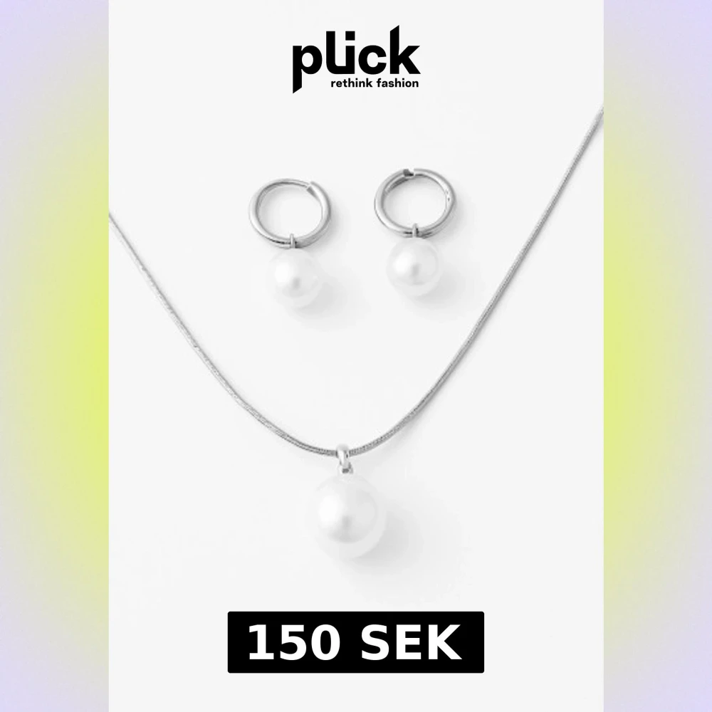 Silverfärgad smyckeset med pärlor