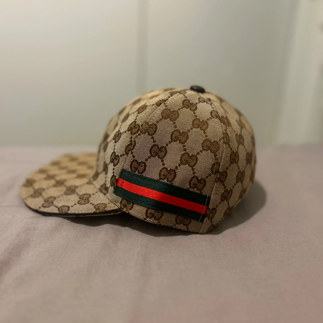 Snygg beige keps från klassiskt GG-monogram i brunt över hela kepsen. På sidan finns den ikoniska gröna och röda randen. Justerbar rem baktill i mörkbrunt. Perfekt för dig som vill ha en lyxig och trendig accessoar.