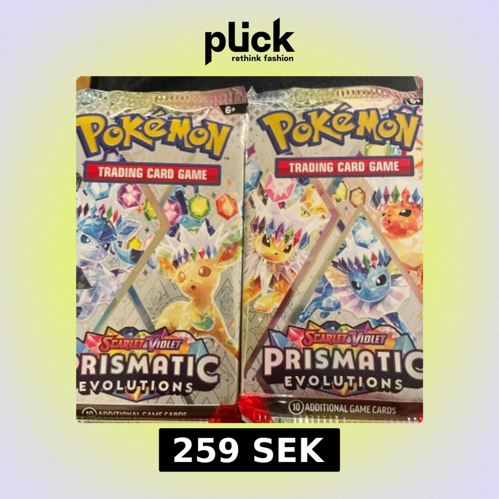Säljer boosterpack från Pokémon Scarlet & Violet Prismatic Evolutions. Varje paket innehåller 10 samlarkort med motiv av Eevee och dess utvecklingar. Perfekt för dig som vill utöka din samling eller spela Trading Card Game.
