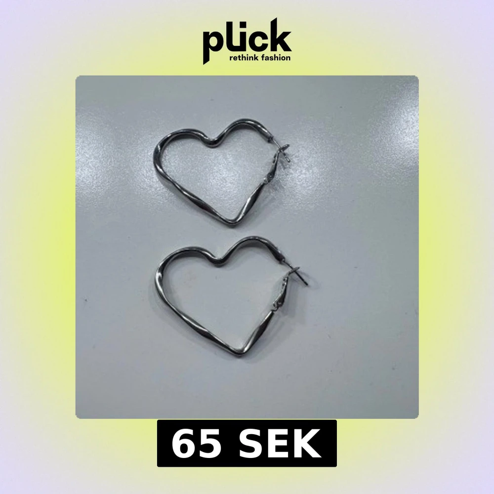 Säljer ett par stora örhängen i form av hjärtan. De är i silverfärgad metall och har en enkel låsmekanism. Perfekta för att ge din look en söt och trendig touch.