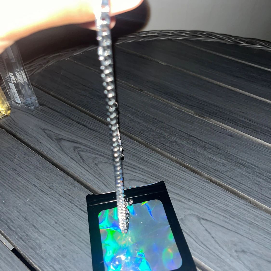 Stilrent halsband i silverfärg med platt kedjedesign. Kedjan har en klassisk look och passar perfekt till streetwear eller för att lyfta en enkel outfit. Längden är medellång och halsbandet har ett smidigt lås. Perfekt accessoar för dig som gillar minimalistisk stil.