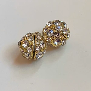 Snygga guldglittriga örhängen med klara stenar som ger en lyxig känsla. Perfekta för att lägga till lite extra bling till din outfit. De har en rund form och är enkla att bära. De har magneter så kräver inte hål i öronen