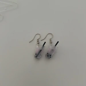 Unika örhängen formade som små bubbelte-muggar med sugrör. Perfekt för dig som älskar bubbelte och vill ha något annorlunda i smyckesamlingen. De har en ljuslila färgton med små svarta detaljer som liknar tapiokapärlor.