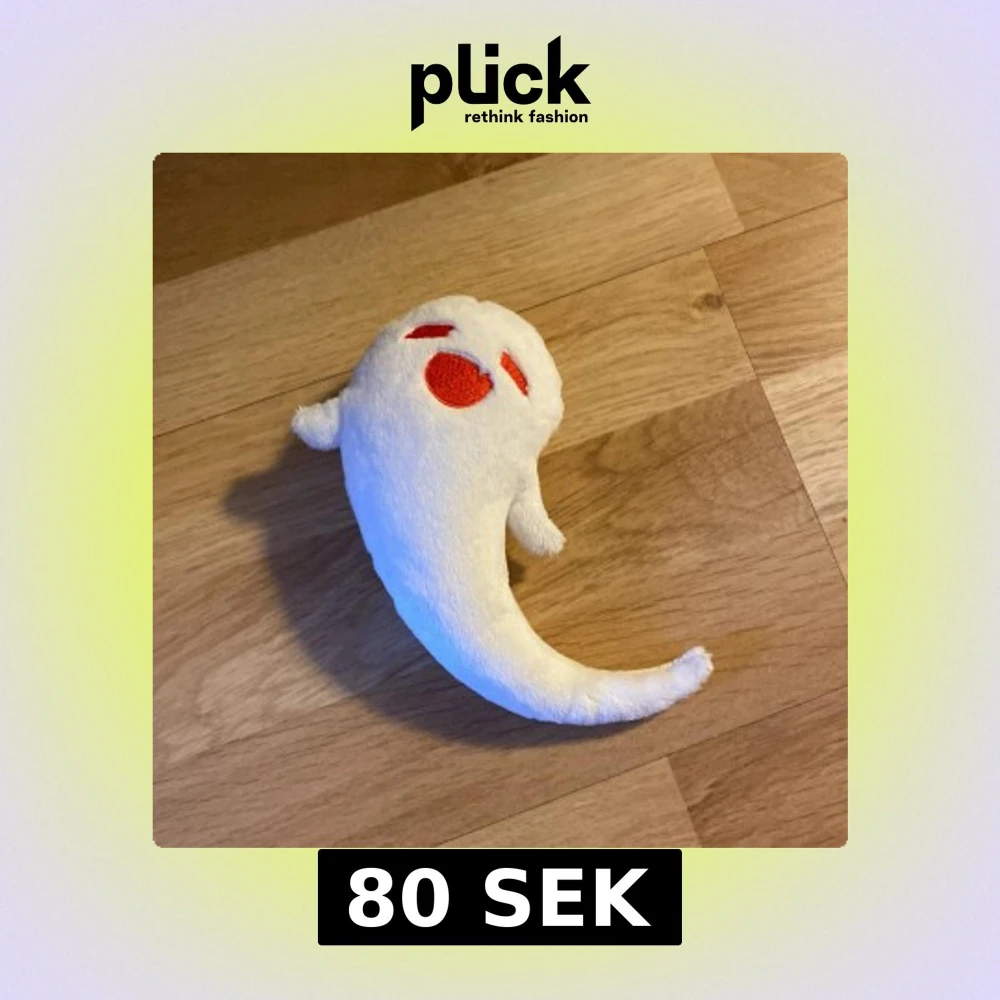 Söt och mjuk vit spökliknande mjukisdjur med röda broderade ögon och mun. Perfekt som en rolig dekoration eller leksak. Hu taos spöke från tv spelet genshin impact