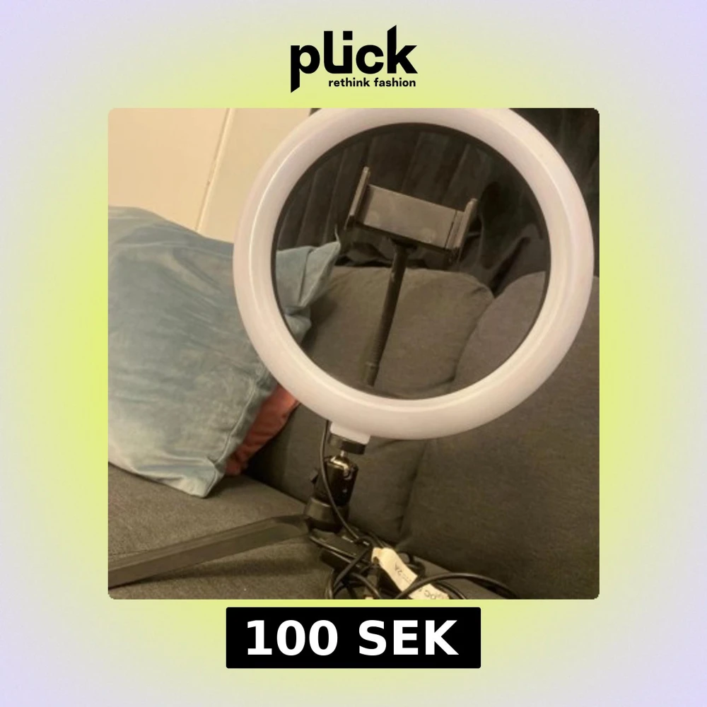 Praktisk ring light med justerbar mobilhållare, perfekt för selfies och videoinspelning. Utrustad med USB-kabel för enkel anslutning. Stabilt stativ för säker placering.