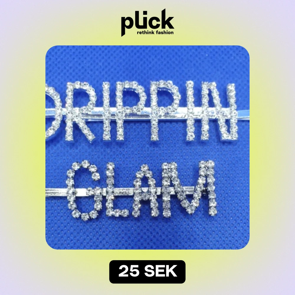 2 st Hårspänne med text, silverfärgad metall och kristaller. Fler sorter finns, se mina andra annonser.