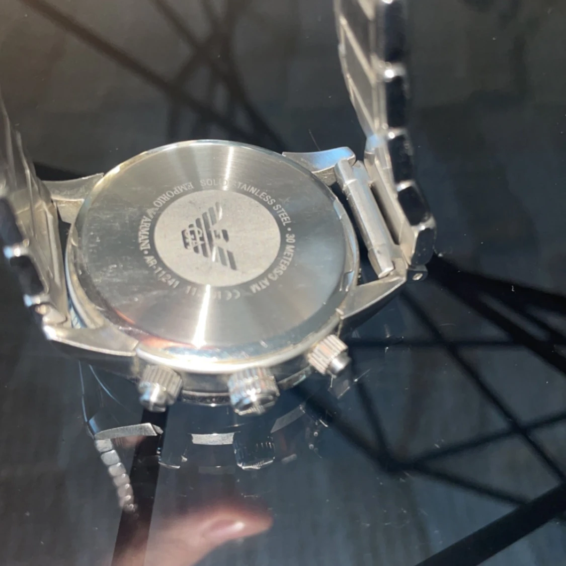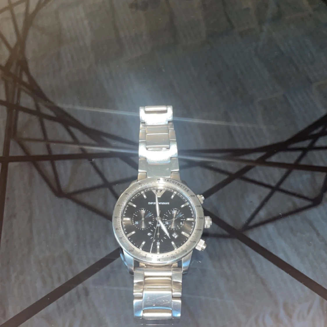 Emperio armani klocka Lås: Butterflylås Mönster: Enfärgat Vattentät: 3 ATM Basfunktion: Datum, tidtagarur Urverk: Quartz Display: Kronografisk Artikelnummer: EA852M02R-D11