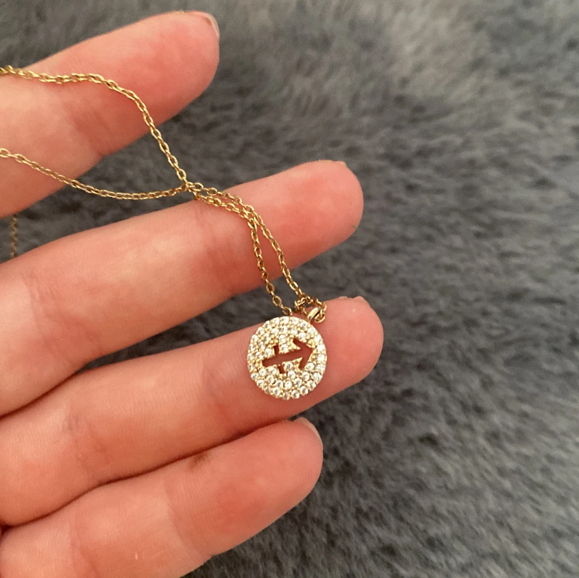 Jättefint guldigt halsband med en berlock med stenar och ett hål som formar stjärnteckenet skytte!! Halsbandet har tappat färgen på en del som jag visade i bilderna. Jag säljer halsbandet för att jag använder mest silver!!🙌🏼