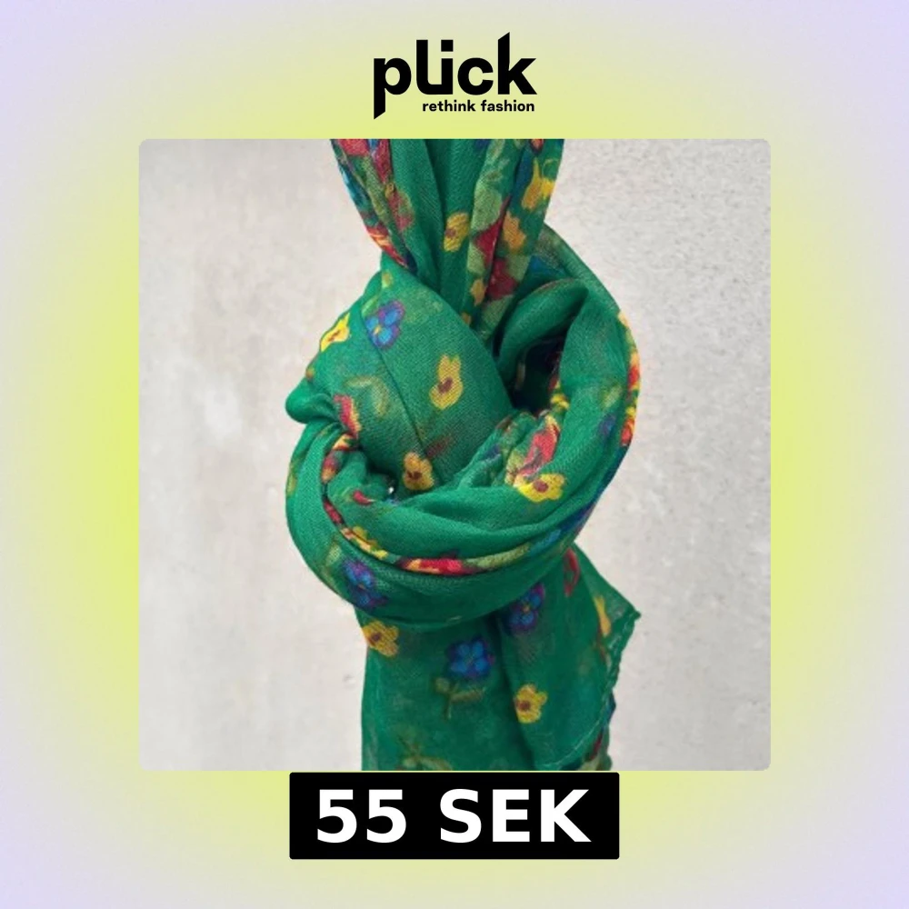 Söt tunn grön sjal med blommönster. Mått: 150 x 70 cm. Perfekt till våren. I kanonskick!