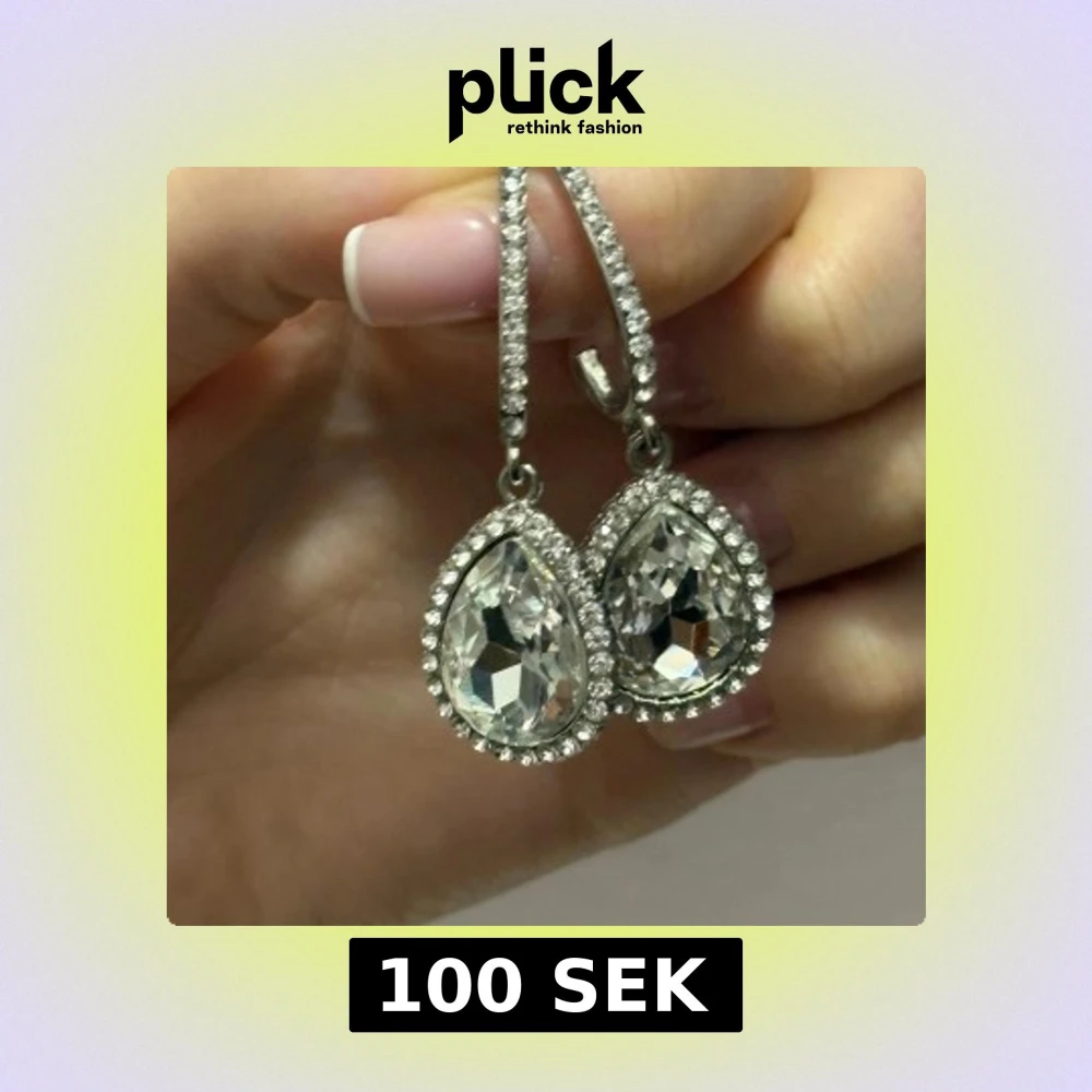 Eleganta droppformade örhängen med stora, klara stenar omgivna av mindre gnistrande stenar. Perfekta för att ge en lyxig touch till din outfit.