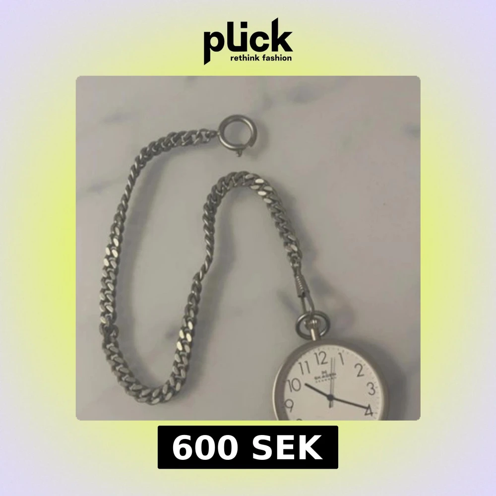 Silverfärgad fickur med kedja