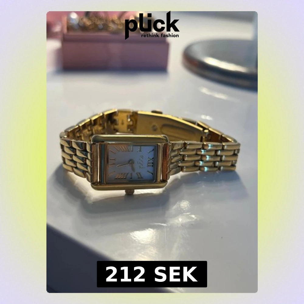 Snygg guldfärgad klocka från Regal med rektangulärt ur och länkarmband i metall. NYPRIS: 500-600kr💗💗 Inte helt säker på storlek!