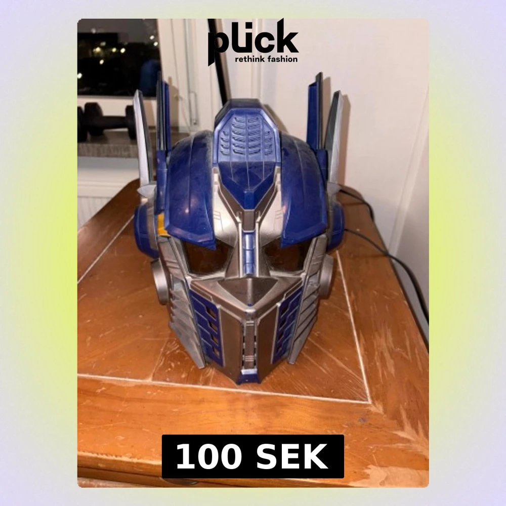 Cool mask föreställande Optimus Prime från Transformers, perfekt för cosplay eller maskerad. Masken är blå och silver med detaljer i svart och orange, tillverkad i hård plast och har justerbart band på insidan för att passa olika huvudstorlekar.
