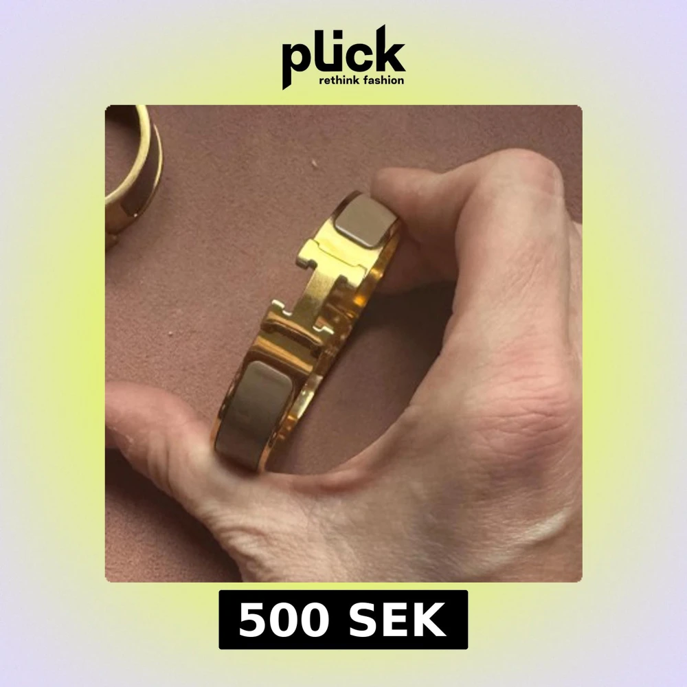 Säljer ett nytt Clic H-armband i guld med ljusbrun färg. Armbandet har en stilren, rundad form och den klassiska H-detaljen framtill. Perfekt för dig som gillar lyxiga accessoarer med minimalistisk vibe.