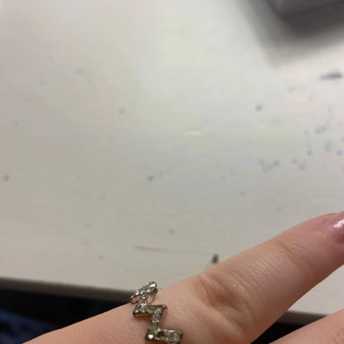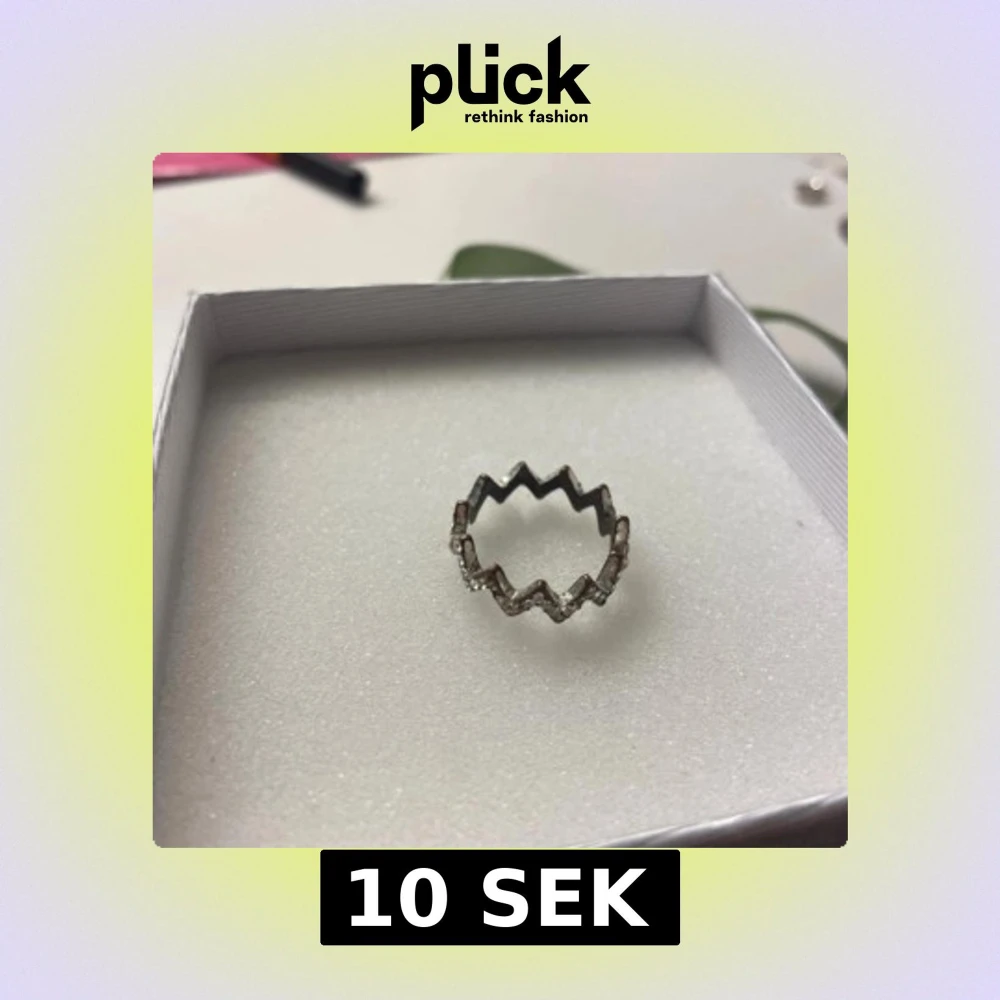 Cool ring i silverfärg med ett unikt zigzag-mönster runt hela ringen. Små glittrande stenar sitter längs kanterna och ger extra bling. Perfekt för dig som gillar att sticka ut med dina accessoarer. Passar både till enkel och edgy stil.