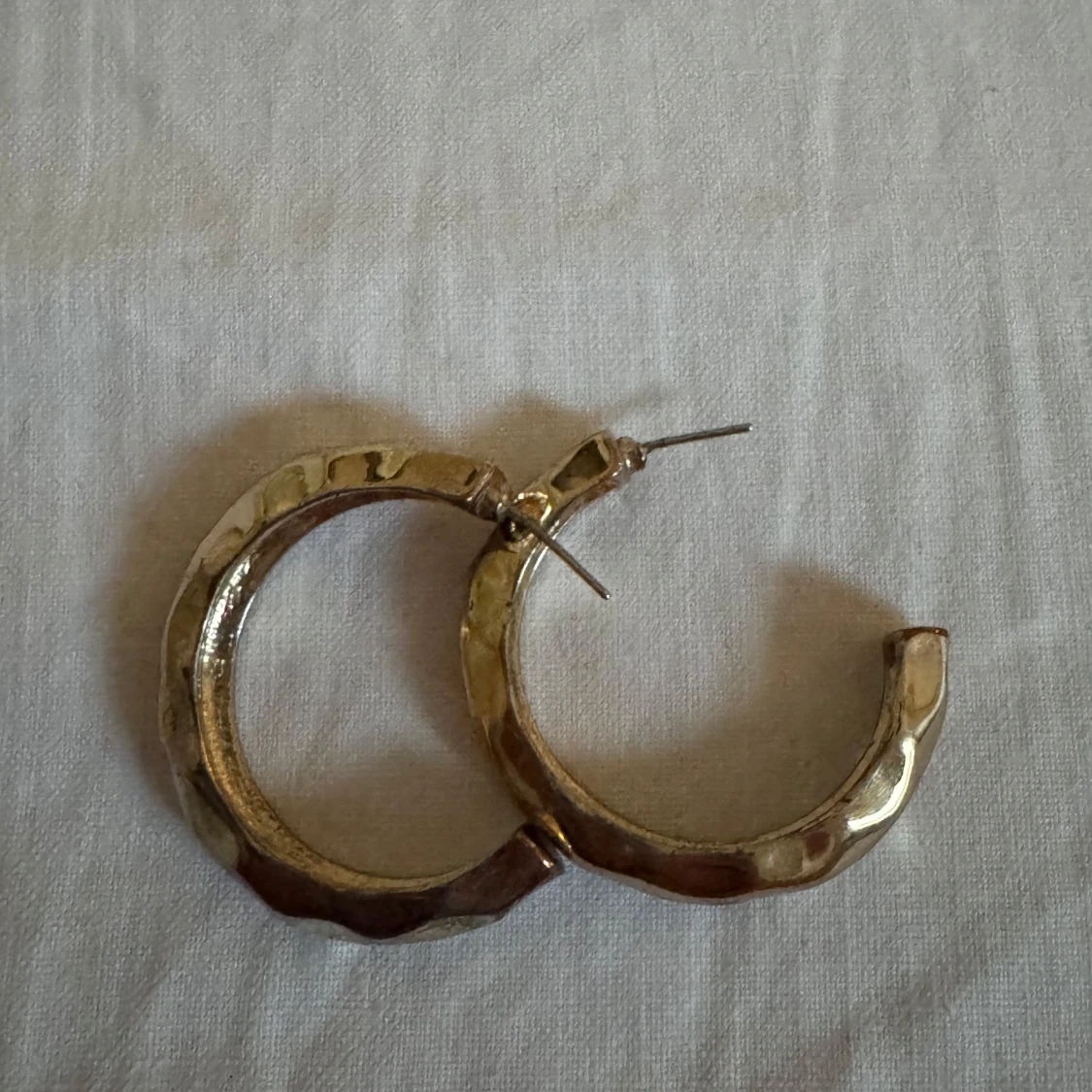Säljer ett par chunky guldiga med hamrad yta. De är runda och har en cool, lite ojämn finish som ger dem extra edge. Perfekta för att lyfta vilken outfit som helst!