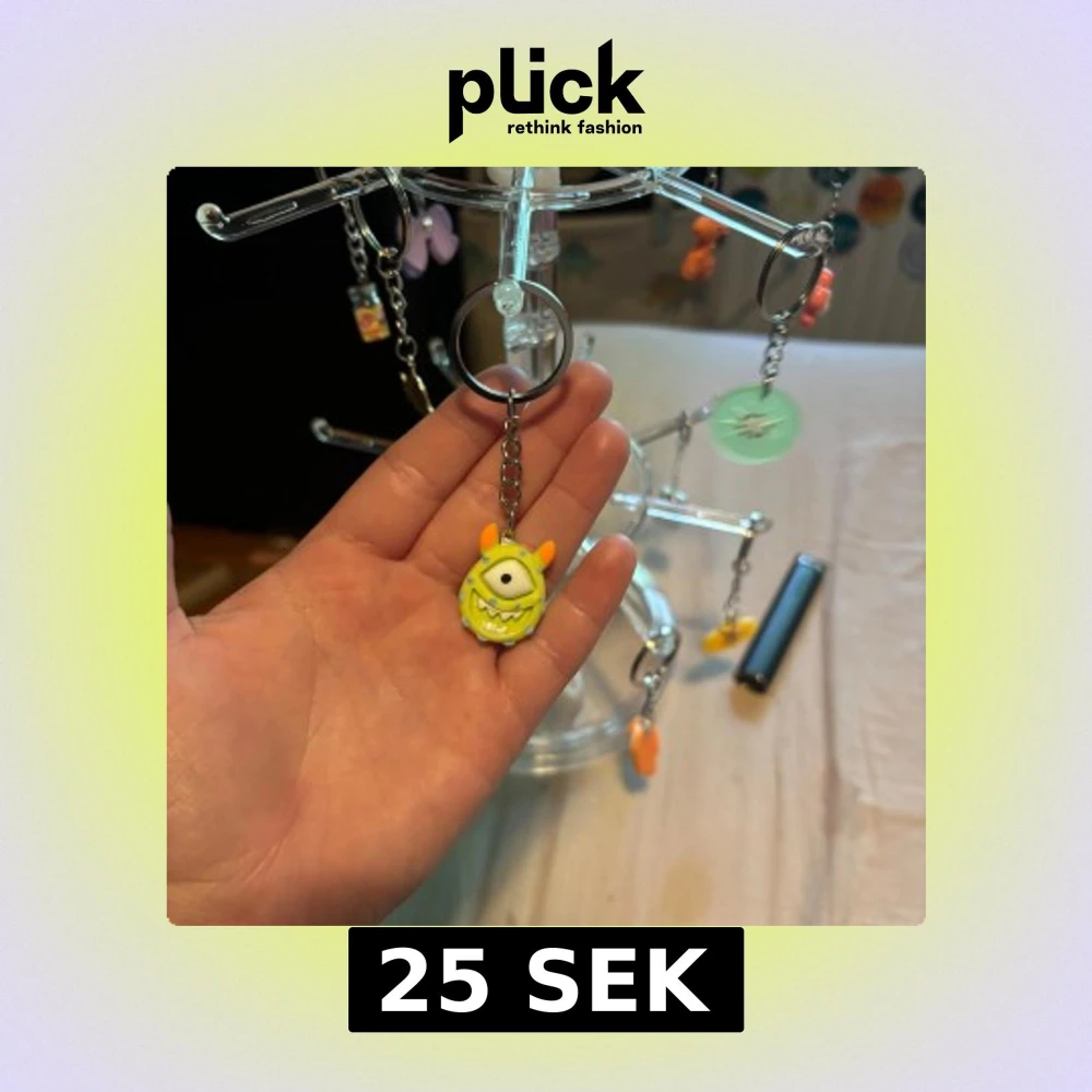 Coolt örhänge med en hängande figur av ett gult monster med ett stort öga och orange öron. Smycket har en kedja i silverfärg och är perfekt för dig som gillar unika och lekfulla accessoarer.