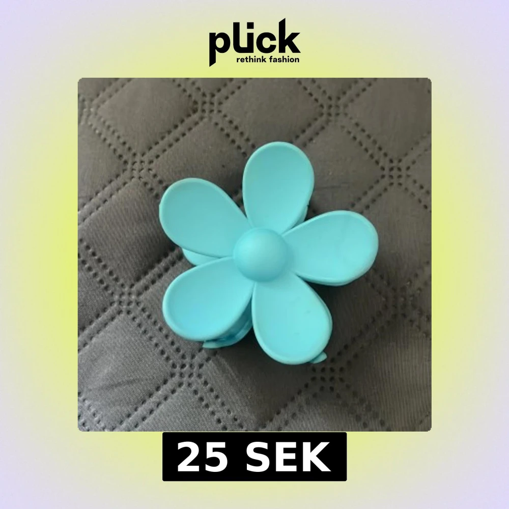 Säljer en söt hårklämma i form av en blomma i ljusblå färg. Klämman är tillverkad i plast och har sex rundade blomblad. Perfekt accessoar för att sätta upp håret på ett stilrent sätt. Perfekt till sommaren