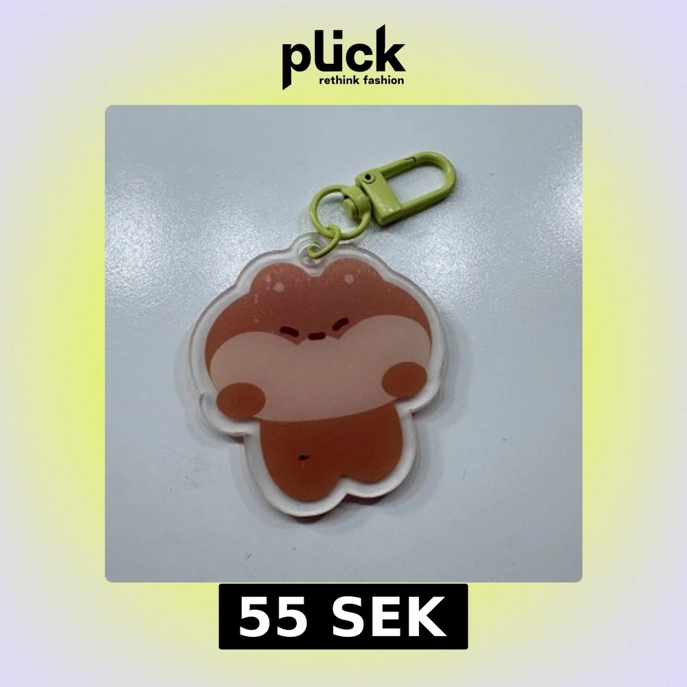 Nyckelring i form av en söt tecknad figur i bruna och beige toner. Figuren har runda former och ett gulligt ansikte. Nyckelringen har en ljusgrön karbinhake som gör den enkel att fästa på väskan eller nycklarna. Skyds plasten är kvar!