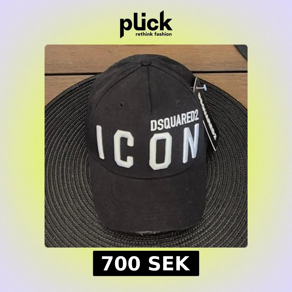 Svart Dsquared2 keös med vit text 'ICON' framtill och märkeslogga på sidan. Klassisk böjd skärm och justerbar passform. Perfekt accessoar för en trendig streetstyle-look. Ny och oanvänd
