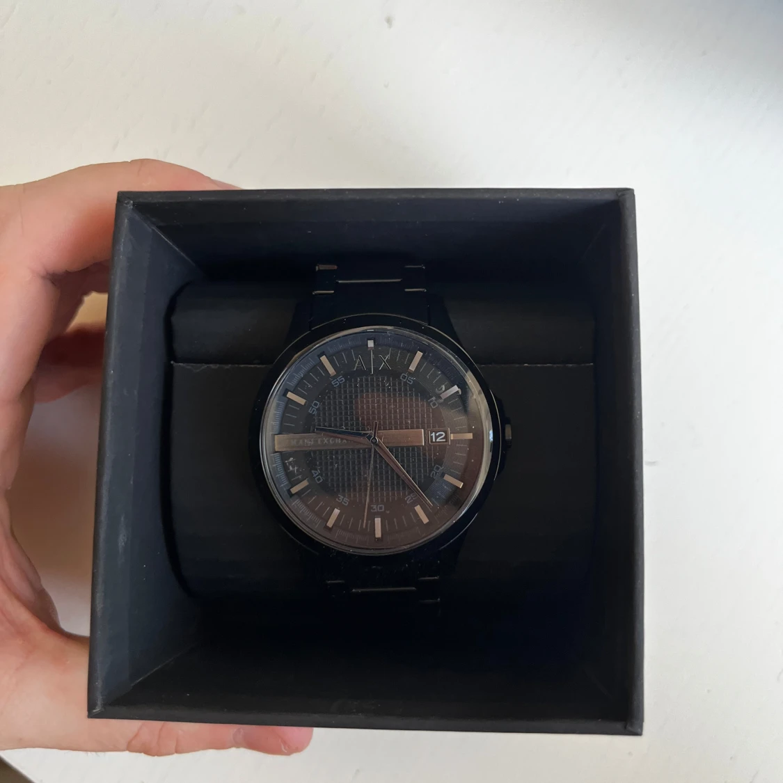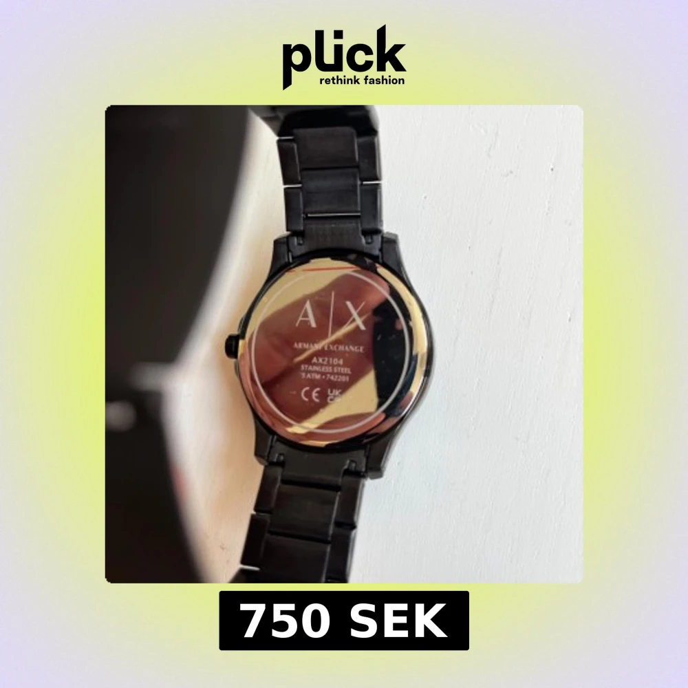 Snygg svart klocka från Armani Exchange med stilren design. Klockan har en svart urtavla och armband i rostfritt stål. Perfekt accessoar för den som vill ha en elegant look. Helt ny, aldrig använd. Ny pris 1900kr