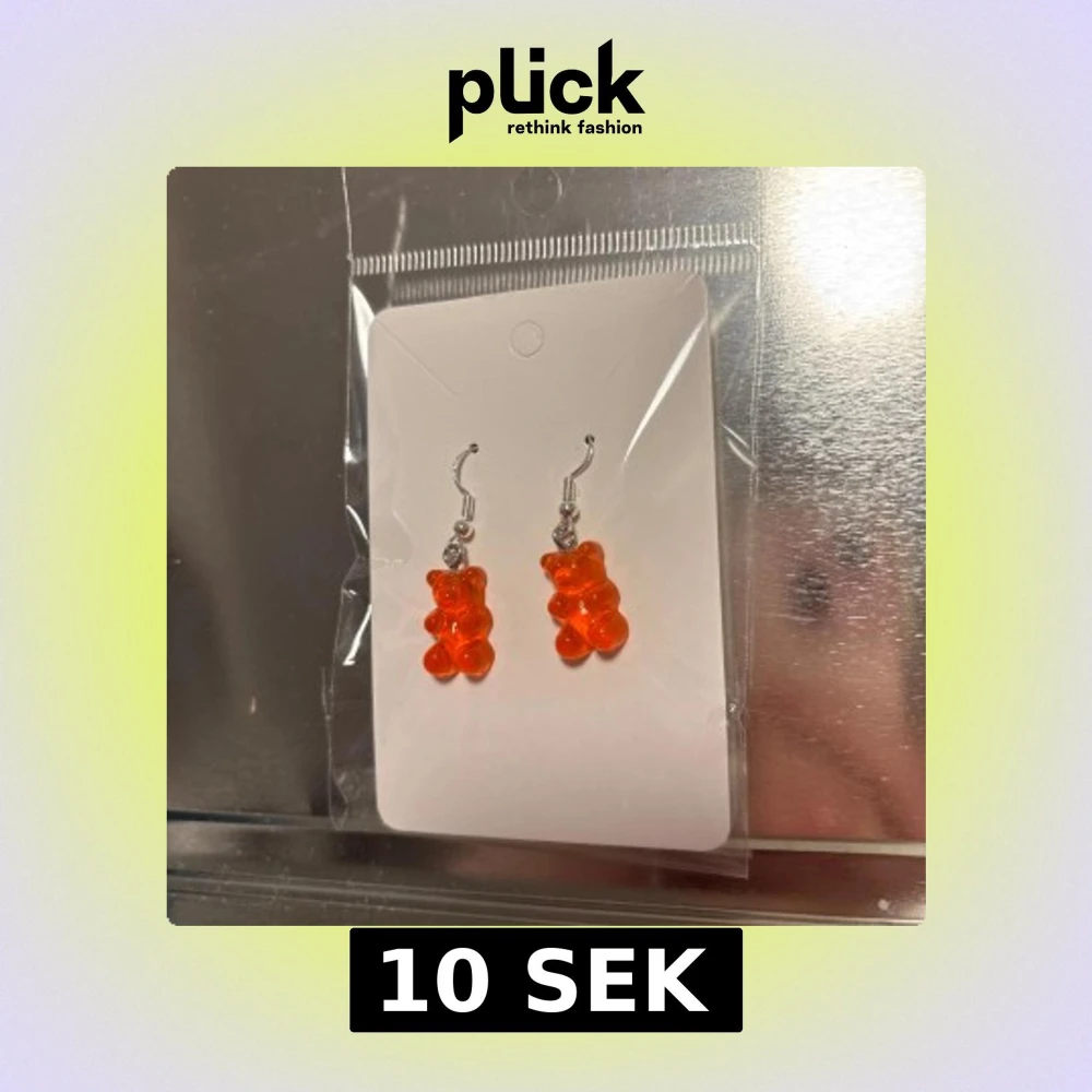 Snygga och lekfulla örhängen med orange björndetalj. Perfekta för att lägga till en färgglad touch till din outfit. Hängande design med silverfärgad krok. (Billigt material)