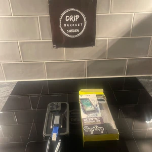 Säljer ett svart vattentätt och stöttåligt skal från Armor-X för iPhone 14 Pro. Skalet har en robust design med en blå rem och karbinhake för extra säkerhet och enkel hantering. Perfekt för att skydda din telefon mot vatten och stötar.