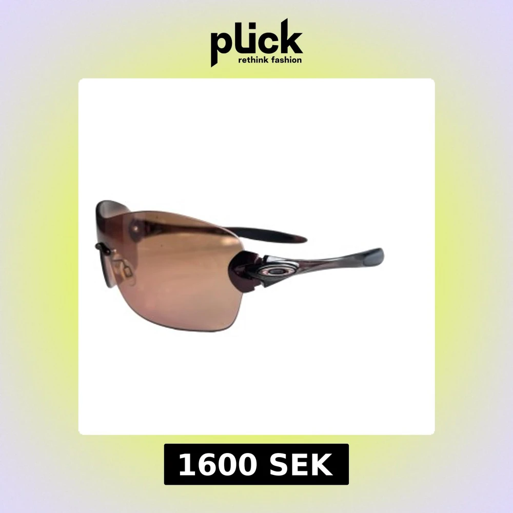Snygga solglasögon från Oakley med bruna, stora linser och svarta skalmar. Glasögonen har en sportig design utan ram runt linserna och Oakleys logga på sidan. Perfekta för dig som gillar en modern och stilren look. Finns märken på glaset, se bilder
