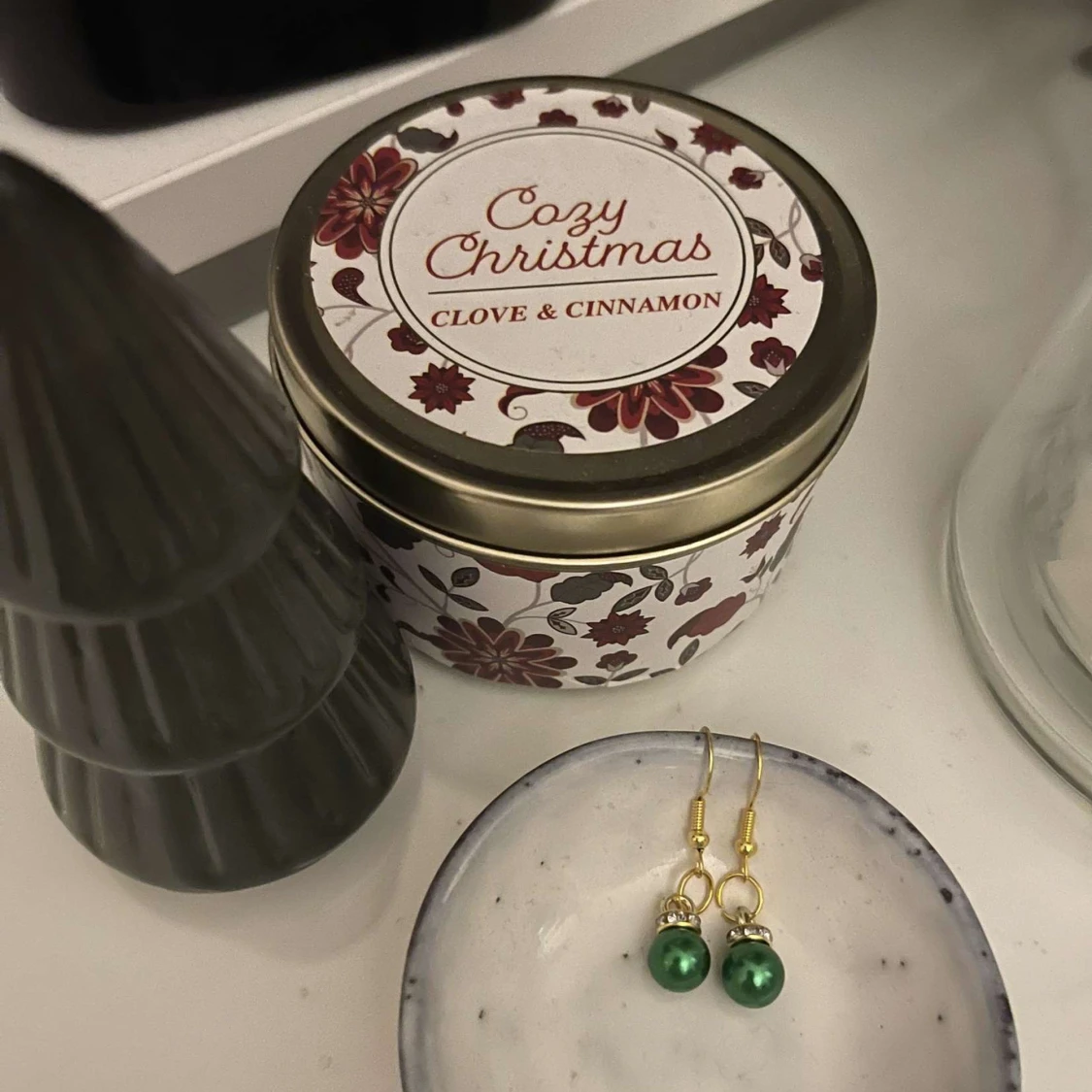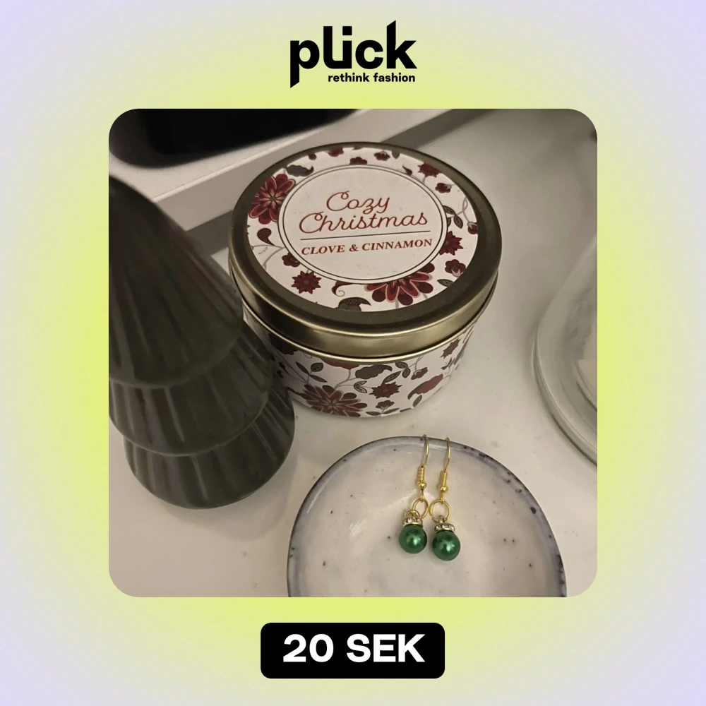 Säljer ett par eleganta örhängen med gröna pärlor och guldfärgade krokar. Perfekta för att ge en touch av färg till din outfit, speciellt under jul och nyår. De är i mycket bra skick och redo att bäras till festliga tillfällen.