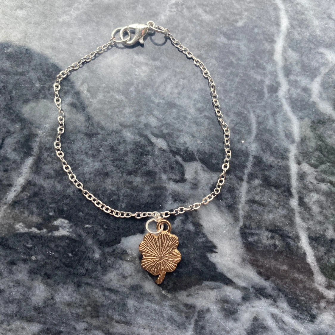 Snyggt armband i silverfärgad kedja med en grön fyrklöverberlock. Klöverhänget har guldfärgade kanter och ger en riktigt charmig och lekfull vibe. Perfekt accessoar för dig som vill ha lite extra tur i vardagen.