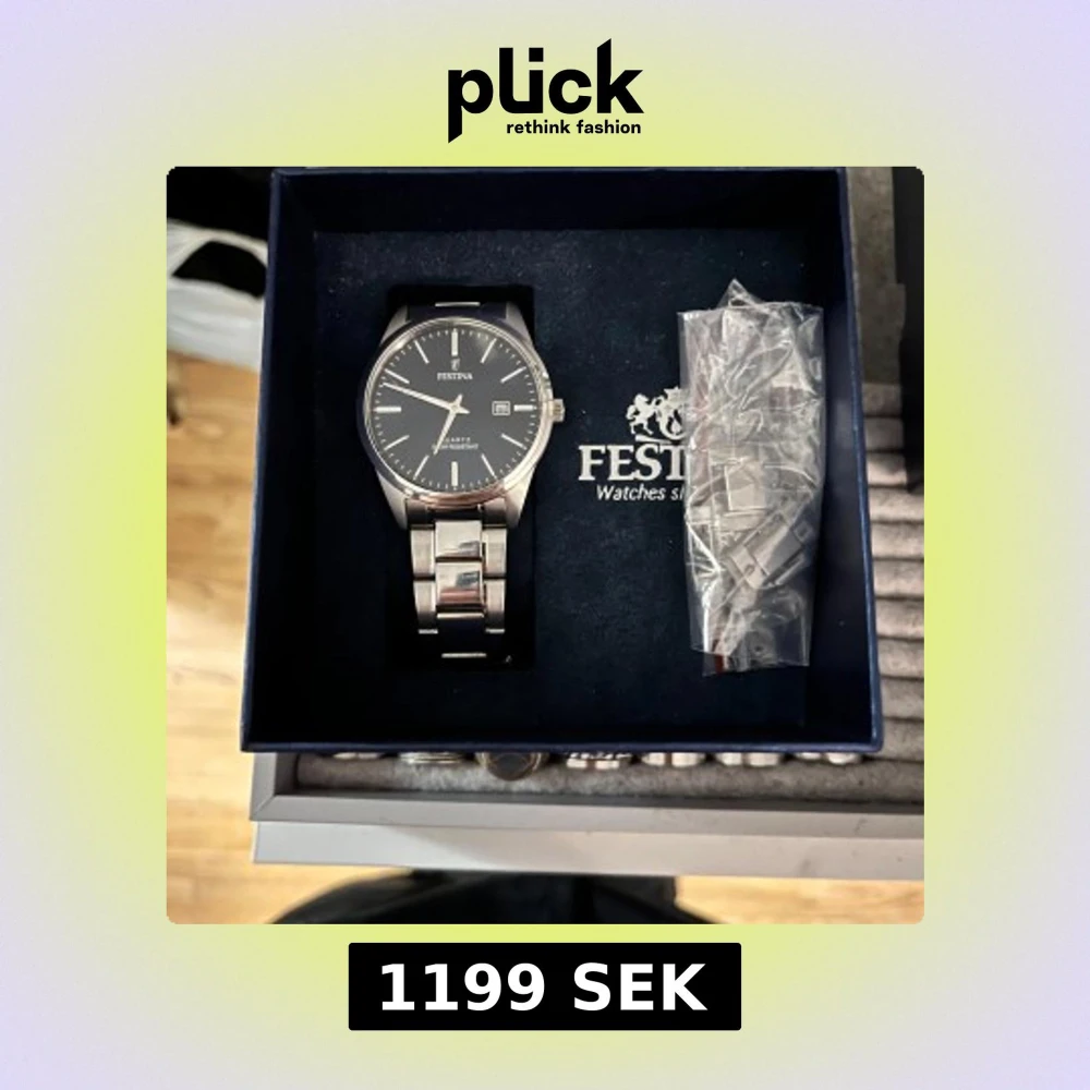 Stilren klocka från Festina med svart urtavla och datumvisning. Armbandet är i blankt silverfärgat metall och klockan har en klassisk rund form. Perfekt accessoar för dig som gillar en clean och tidlös look. Tyvärr lite repig därav kan priset diskuteras
