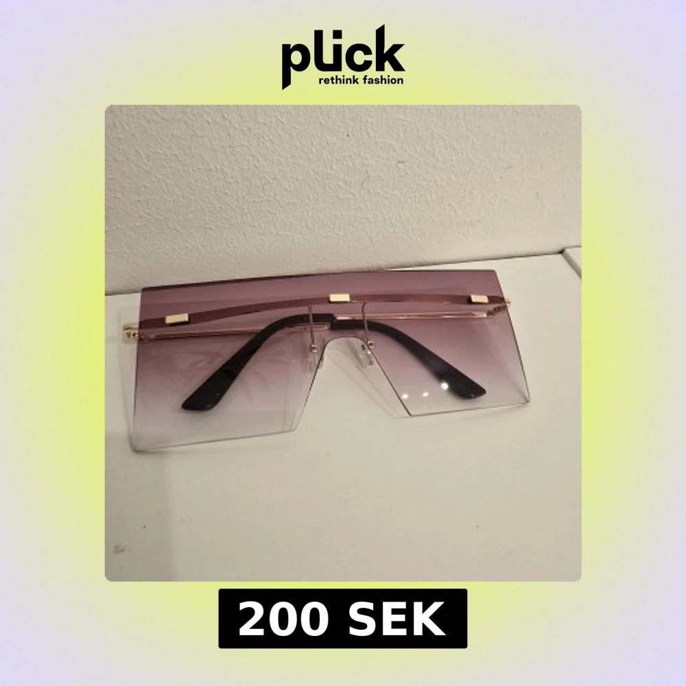 Stora, futuristiska solglasögon med lila tonade glas och gulddetaljer upptill. Raka linjer och shield-form ger en cool vibe. Svarta skalmar och transparent nederdel på glasen. Perfekta för dig som vill sticka ut.