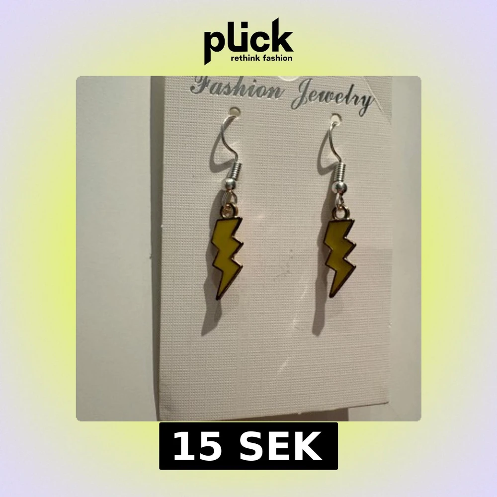 Coola örhängen med blixtform i gul färg och svarta kanter. Hängande modell med metallkrok, perfekta för att ge din look extra edge. Passar dig som gillar att sticka ut och vill ha något unikt i smyckeslådan.