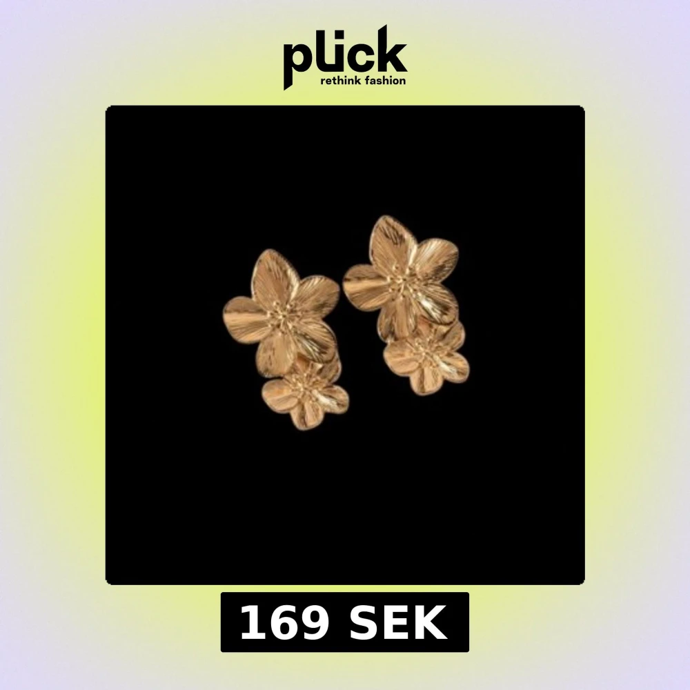 Supersnygga örhängen i guldton med tre blommor i olika storlekar på varje örhänge. De har en detaljerad, texturerad yta som ger ett lyxigt intryck och passar perfekt för dig som vill sticka ut med en unik accessoar.