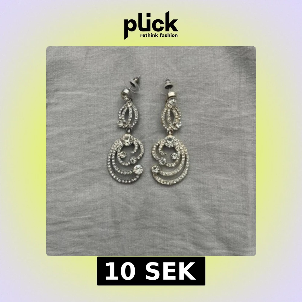 Säljer ett par snygga hängande örhängen i silverfärg med glittrande stenar. De har en swirl-formad design med flera små och stora strass som ger extra bling. Perfekta för att lyfta din look med lite glamour och sparkle.