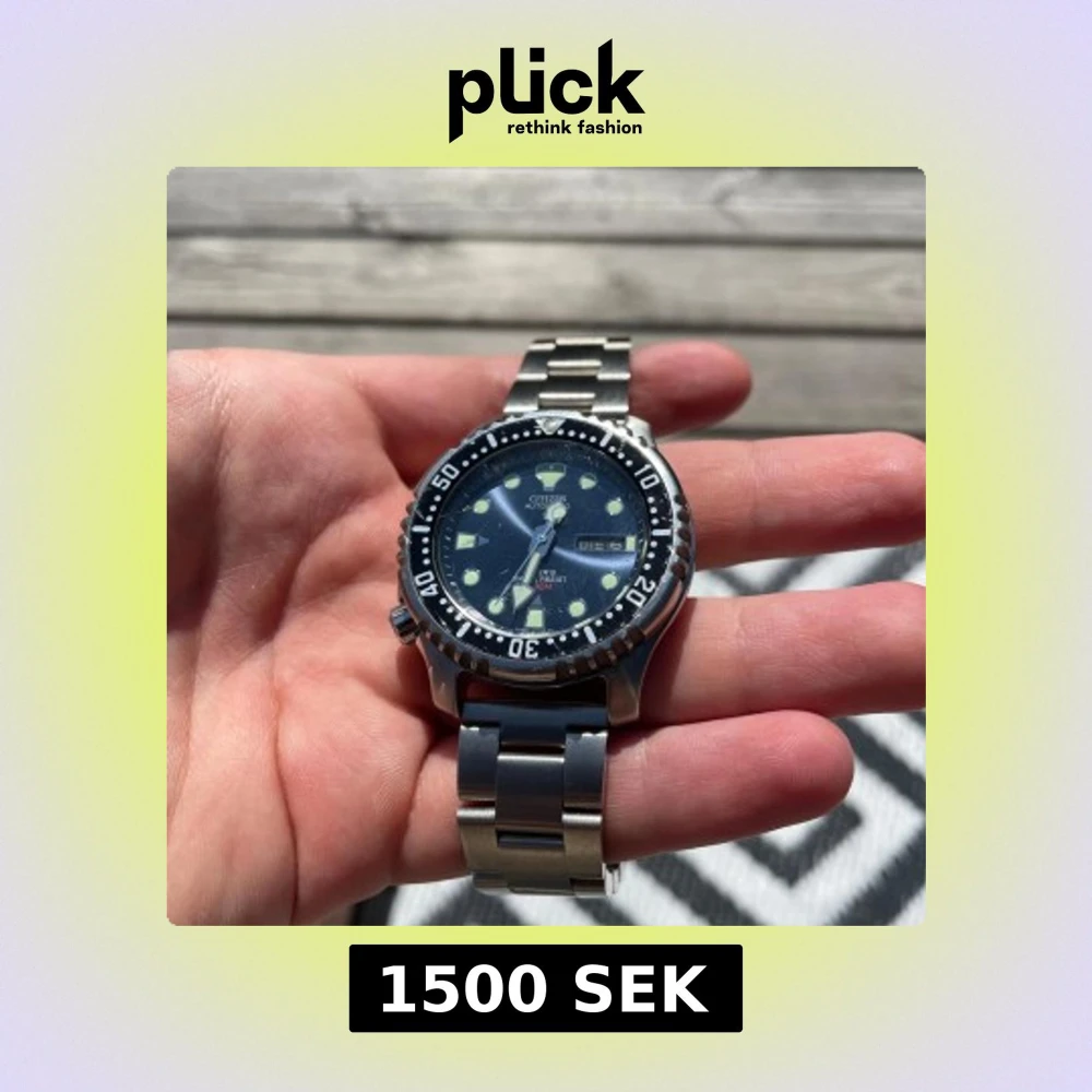Säljer en Citizen promaster automatisk dykarklocka med en stållänk men original blå gummirem medföljer också. Klockan har en marinblå urtavla. Fick den i julklapp men behöver lite pengar. Kommer i originalförpackning. Nypris:2750.