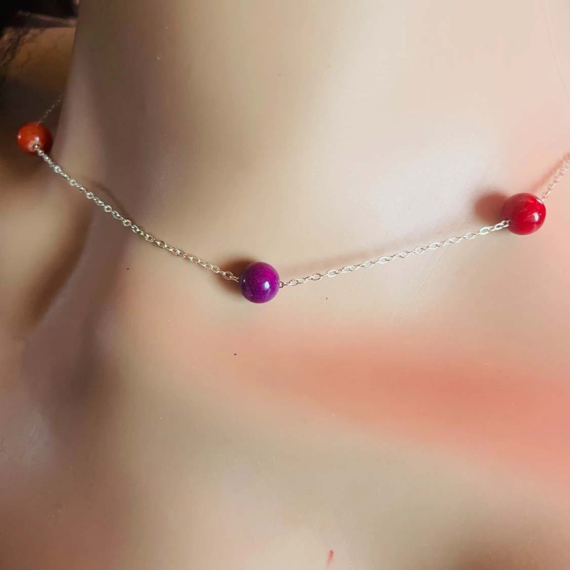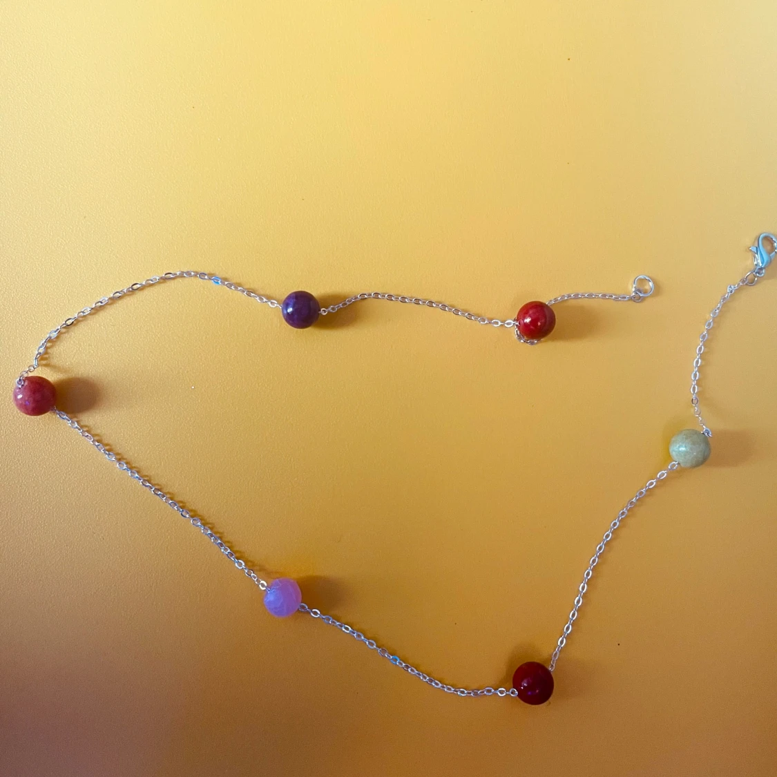 Made by prisförslag- Charmigt halsband med en tunn kedja och färgglada pärlor i olika nyanser. Perfekt för att lägga till en färgklick till din outfit.
